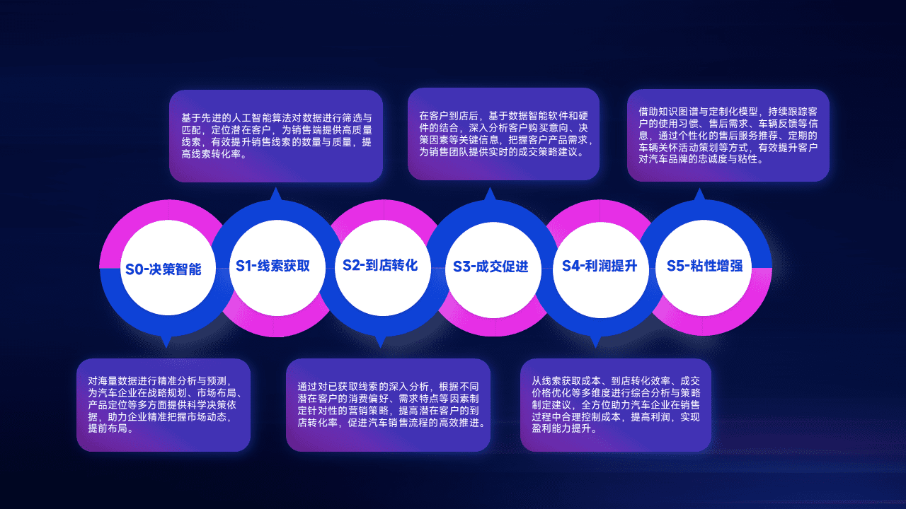 通过拓宽潜在客户来源、、优化线索分配并提高到店转化率,,以增强销售效率。。同时,,,利用线索数据不断优化分析模型,,有效提升转化率,,,扩大营销影响力。。